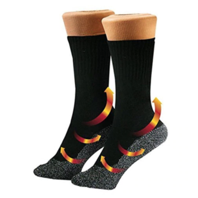 FINI LES PIEDS FROIDS avec les chaussettes chauffantes HotSock™ . Fait de matériel spécialement développé pour l’aérospatiale qui garde les pieds TOUJOURS au chaud!