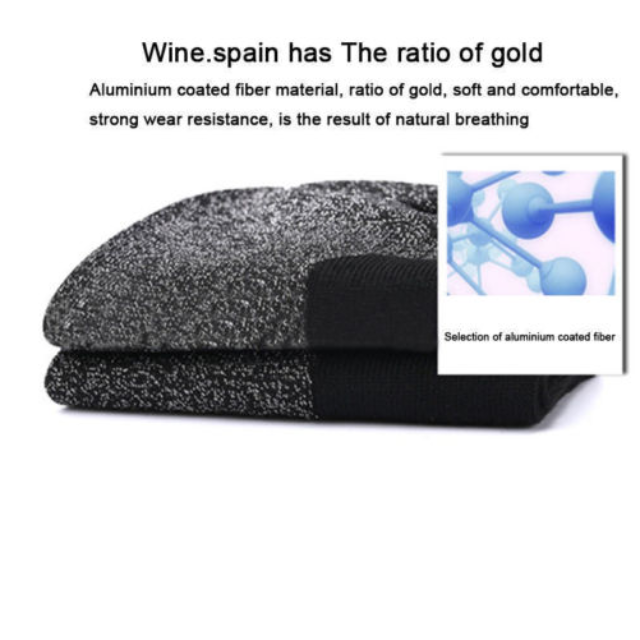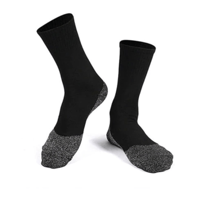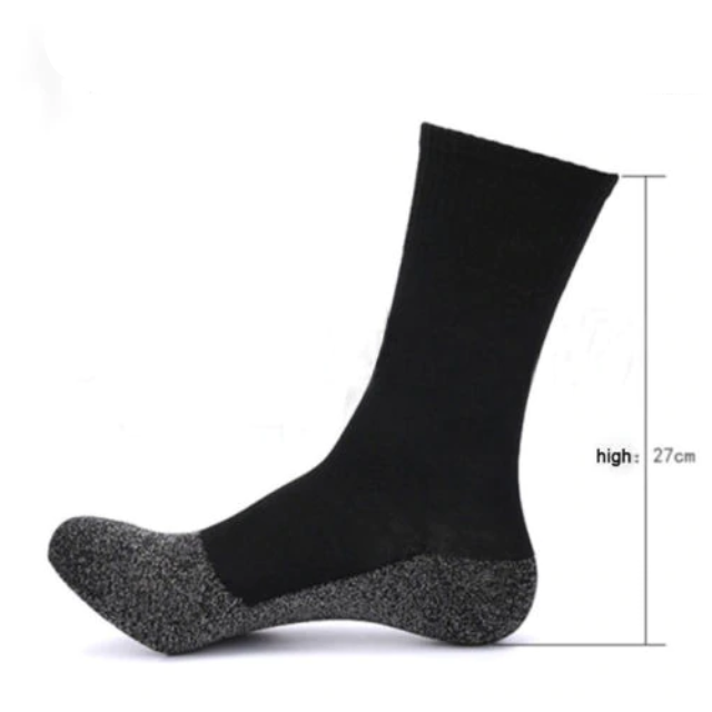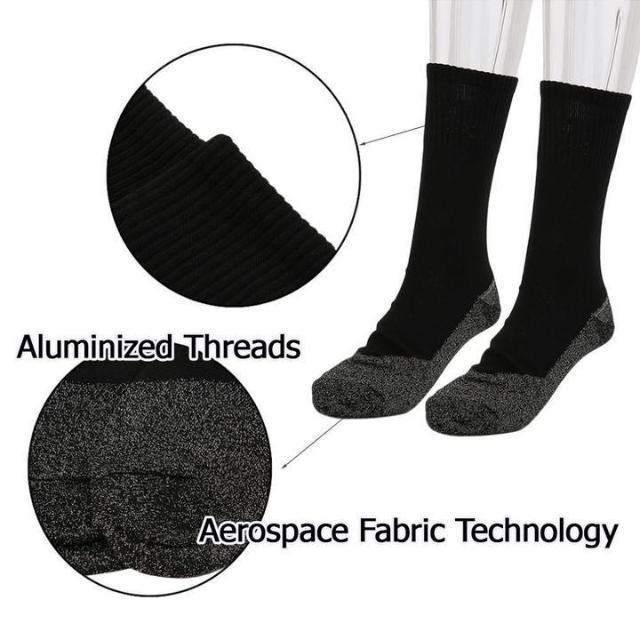 Ces chaussettes sont tissées avec un fils aluminé, ce tissu respire et réfléchit la chaleur de votre corps réduisant ainsi la transpiration et l’humidité. Vos pieds restent secs, chaud et très confortables.