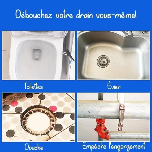 Cette poudre magique va se transformer en mousse puissante dès qu'elle entre en contact avec l'eau. Elle nettoie en profondeur, élimine les taches incrustées et la rouille. De plus, la poudre empêche l'engorgement de vos toilettes et de vos éviers, pour un nettoyage complet, efficace et rapide des canalisations.