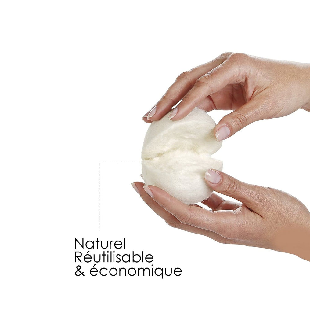 Ce sont des boules faites à 100 % de laine, fabriquées à la main et entièrement naturelles. Placées dans la sécheuse, elles sont reconnues pour réduire le temps de séchage et éliminer le froissement et la statique des vêtements de façon écologique.