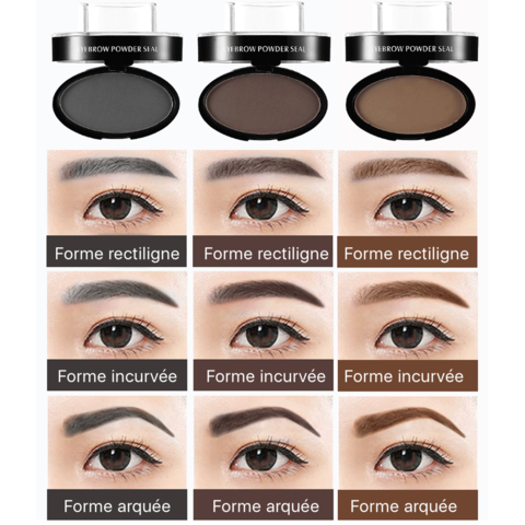 deux tampons (un pour chaque sourcil) une base de poudre à tampon de sourcil Formes disponibles : Rectiligne pour des sourcils droits incurvés pour les sourcils légèrement en courbe arqués pour les sourcils fortement en courbe avec une brisure