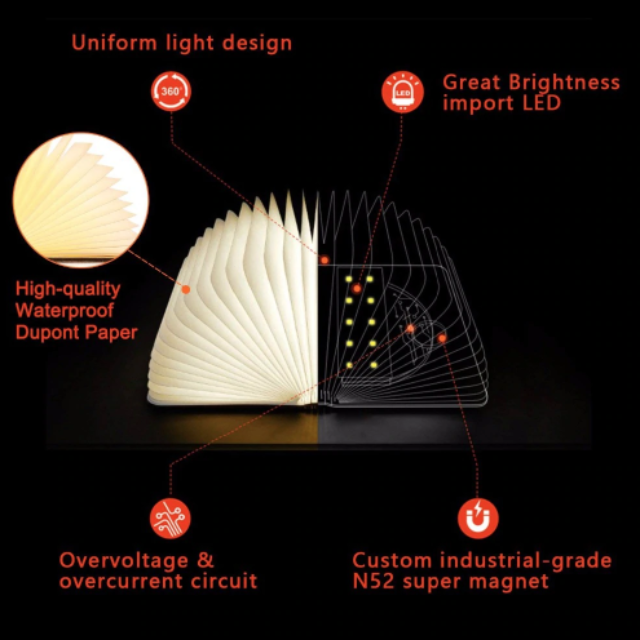 Ce livre fantastique est une lampe surprenante et moderne, qui est construite sous forme d'un livre. Ouvrez-le et les pages s'illuminent et vous apporte une douce lumière d'ambiance en toute situation. Son joli design donne un style unique à ce produit qui fera une superbe décoration.