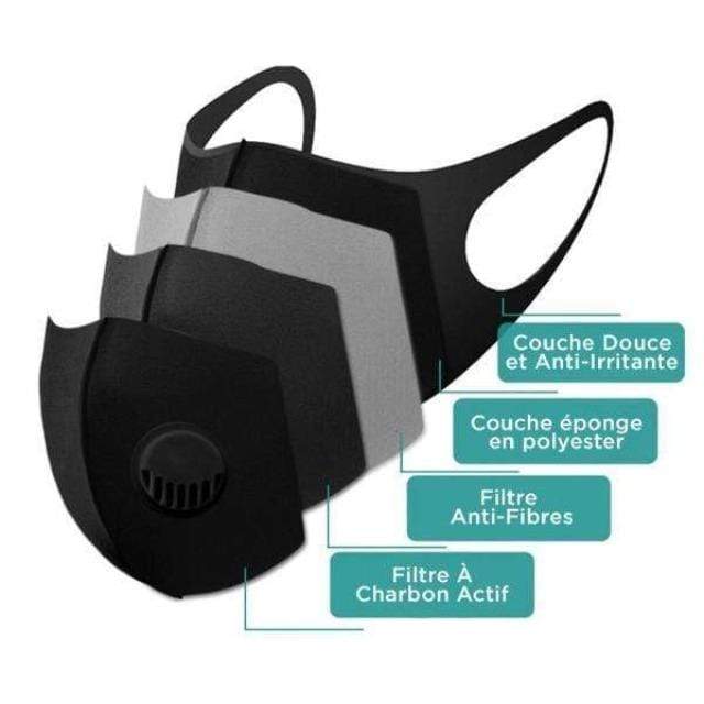 - Ce masque de protection est équipé d'un filtrage de haute qualité, respirant, hypoallergénique et antibactérien. Vous respirerez que de l’air pur.