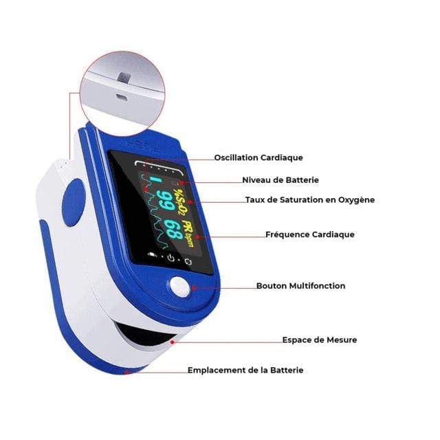 Ce petit saturomètre est un outil médical qui se fixe sur une partie du corps, comme les doigts, les orteils ou le lobe de l'oreille.