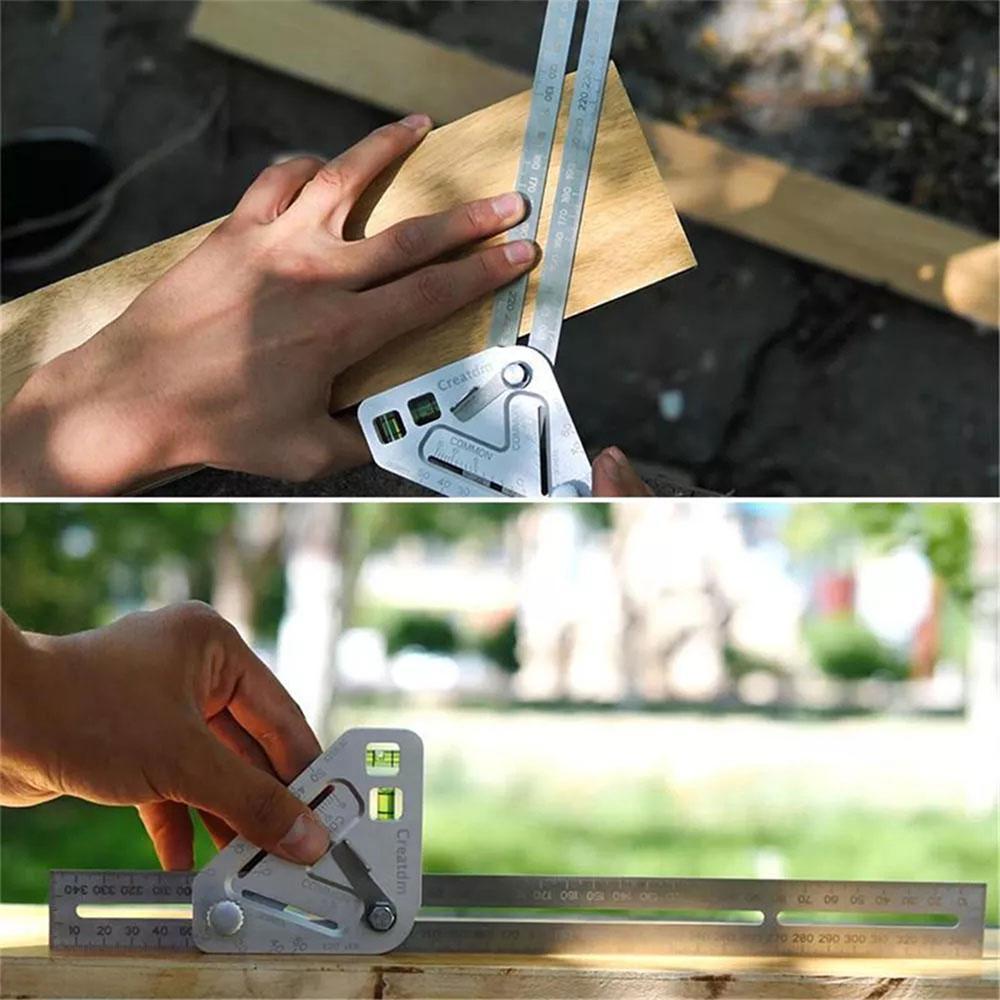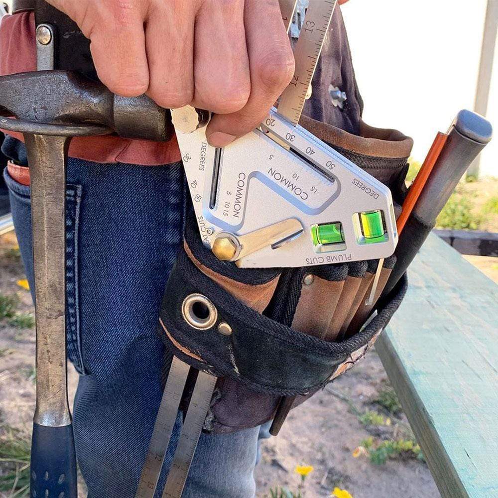 Notre outil de menuiserie révolutionnaire combine les caractéristiques d'un carré combiné: biseau, rapporteur d'angle, niveau numérique et carré rapide en un seul outil compact et portable.