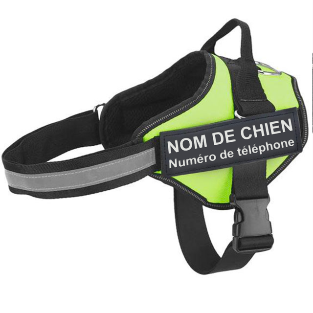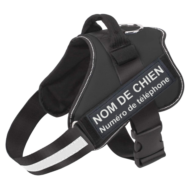 Le harnais dispose de deux bandes velcro sur chaque côté qu’il est possible de modifier ! Pour personnaliser votre harnais, ajoutez le texte de votre choix (nom de votre chien - votre numéro de téléphone...) dans le champ "Texte du logo" prévu à cet effet. Cela vous permet de toujours être en mesure de retrouver votre compagnon en cas de perte. Nous savons à quel point il est important pour vous.