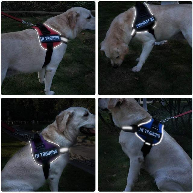 On note par ailleurs la présence d'une bande réfléchissante sur ce harnais, qui garantit une meilleure visibilité la nuit ou durant les heures de la journée qui présentent une luminosité réduite, ce qui est idéal pour des balades à l’aube ou au crépuscule, et même par temps de pluie ou brouillard.