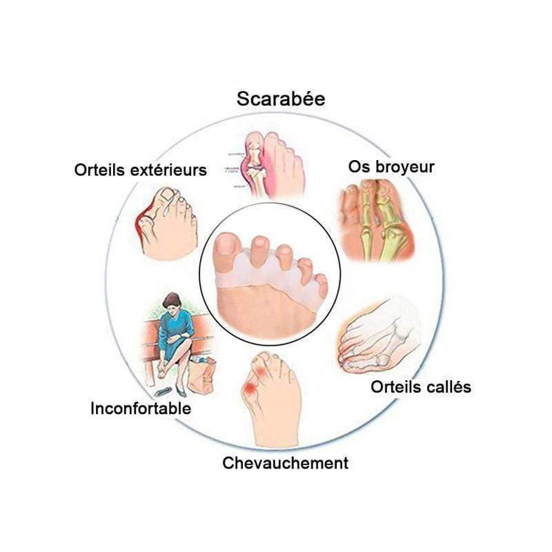 • Le séparateur d'orteils améliore le positionnement de vos orteils et ajuste en cas de mauvais positionnements
