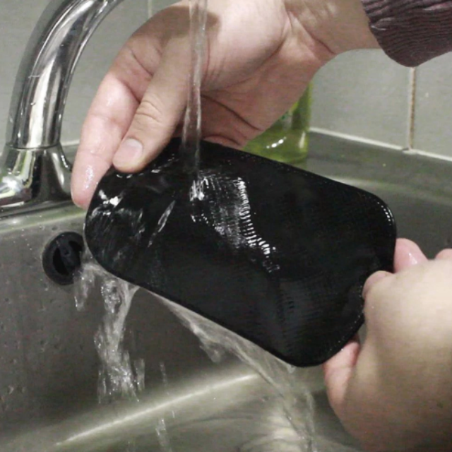Ce support antidérapant est fabriqué à partir d’un silicone spécial qui adhère sans laisser de résidus ni sur votre tableau de bord ni sur les objets que vous y posez.