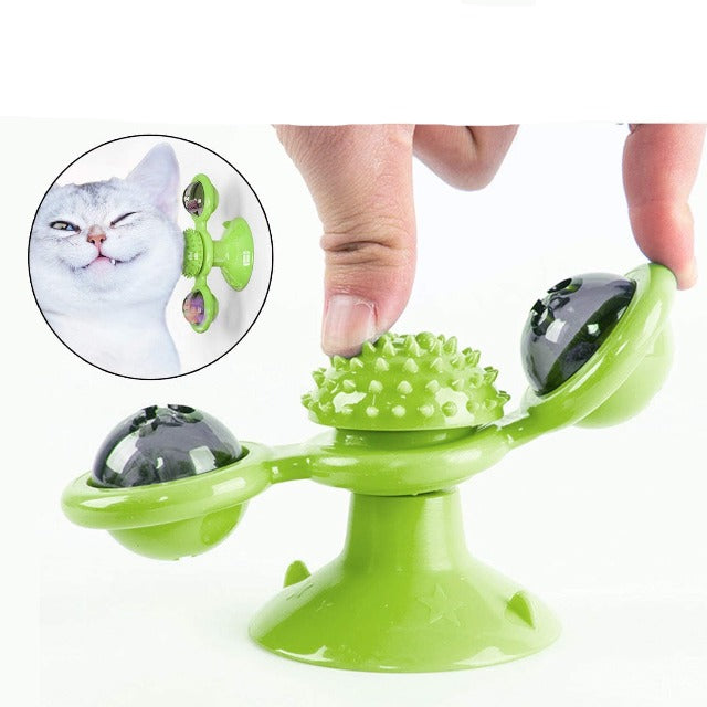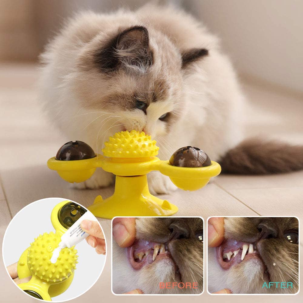 L'axe central de ce jouet tourbillonnant est composé de petit picots : il va adorer se gratter dessus ! Il aimera se soulager et en même temps déposer ses phéromones. Vous pouvez en plus y déposer du dentifrice pour chat dessus afin qu'il puisse mordiller et se nettoyer les dents et les gencives.