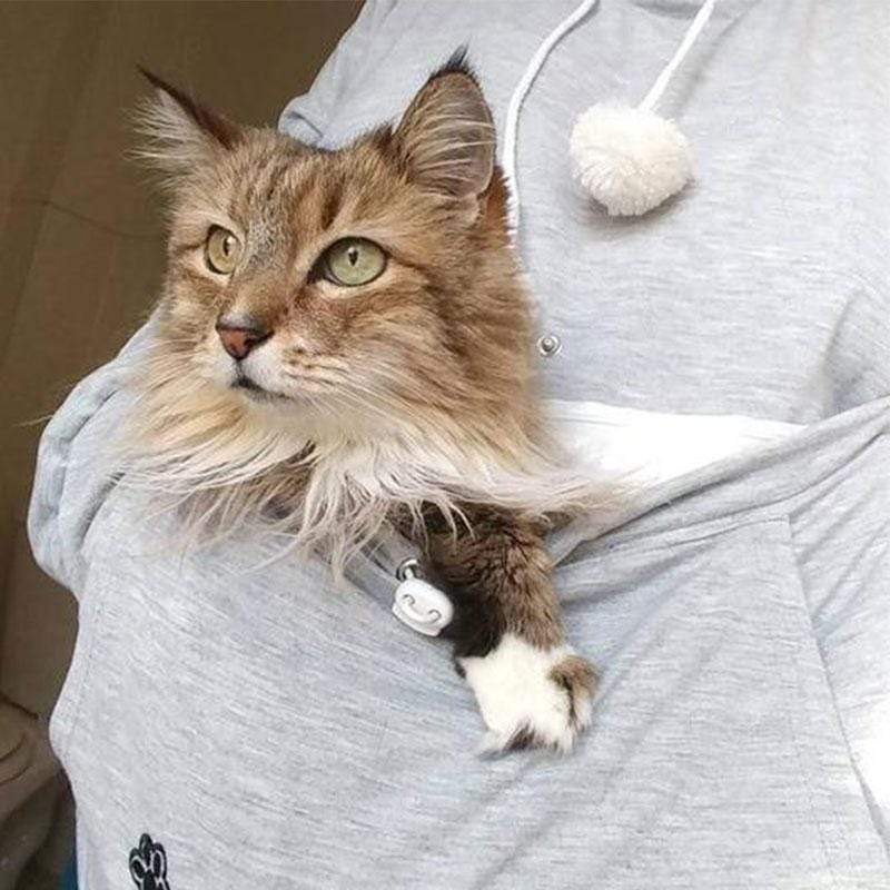 Faites d'une pierre deux coups avec ce sweat-shirt à capuche. Vous pouvez montrer à votre chat le monde à travers ce sweat-shirt à capuche tout en restant confortable, élégant et fabuleux !