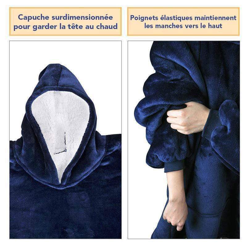 Il est étonnamment confortable et combine la chaleur d'une couverture avec le confort de votre sweat à capuche préféré. Il est fait de laine extra-douce et son intérieur est fait de peluche Sherpa. Doté d'une capuche surdimensionnée pour garder votre tête au chaud et au confort, ainsi que d'une grande poche large pour garder vos biens où que vous soyez. Il est même réversible et portable !!