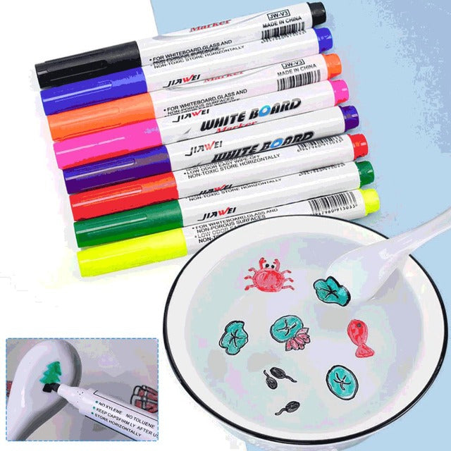 Dessinez n'importe quelle forme sur la surface de la cuillère et voyez-les bouger en direct, l’encre de ces feutres n’est pas soluble dans l’eau, et elle est aussi moins dense qu’elle donc elle flotte intacte à sa surface. En plus, notre encre de haute qualité permet une tenue parfaite des dessins dans l'eau. Assurez-vous que la cuillère en céramique soit sèche avant de dessiner dessus !