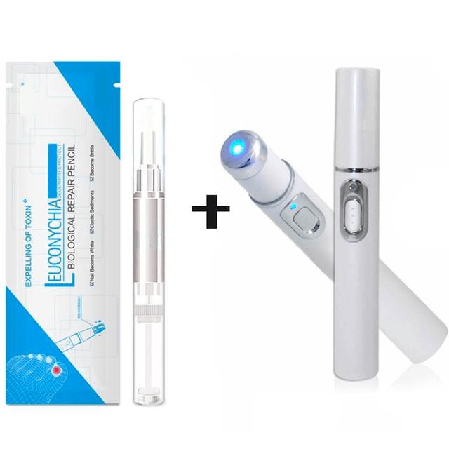 Voici un Ensemble spécialement conçu pour le s oin des ongles: Le gel stylo et le laser bleu ! Ils t raiteront toutes vos i nfections des ongles pour les rendre plus s ains et plus beaux... des ongles en pleine s anté.